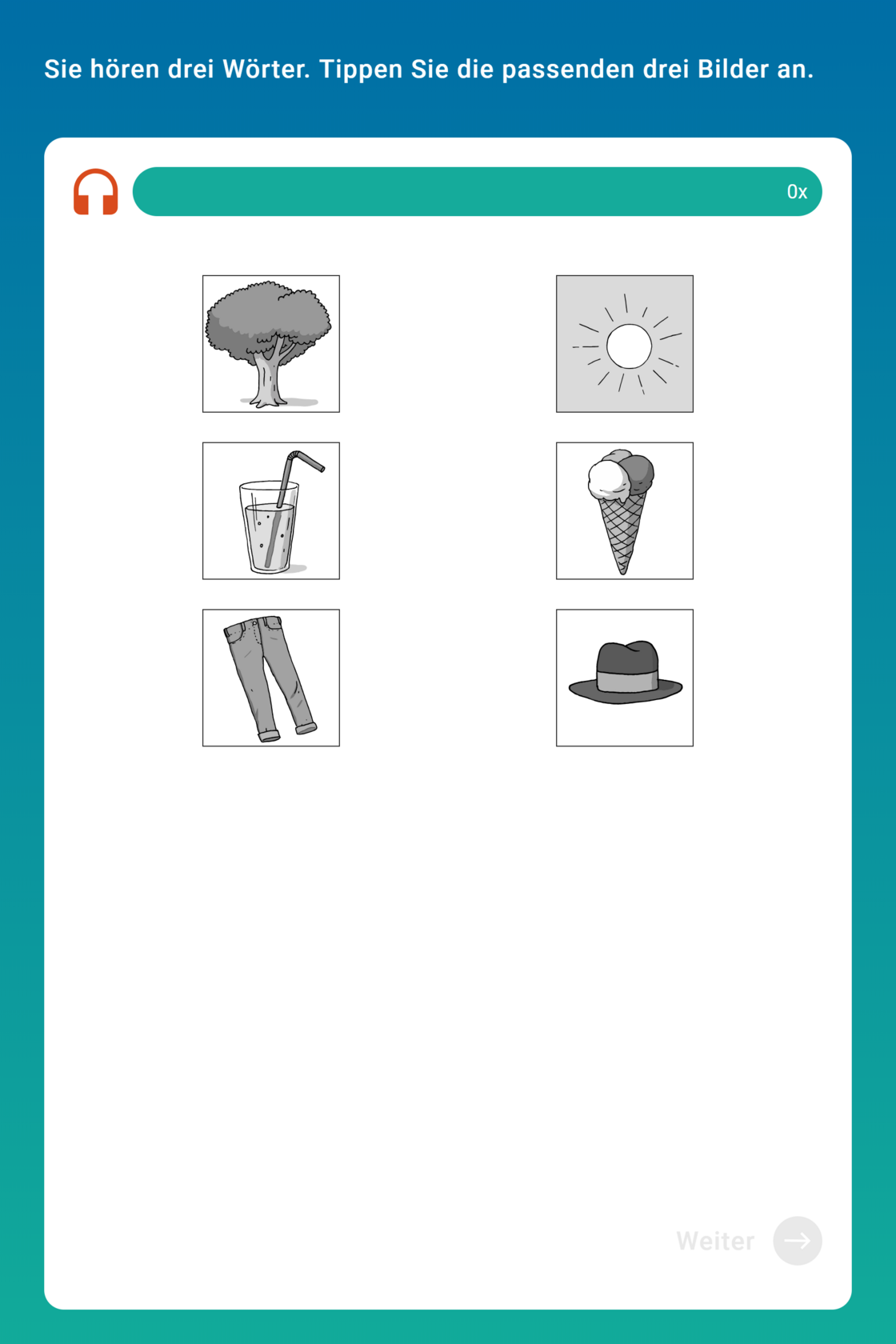 Nach dem Video können Sie den Test am Tablet starten. Sie lösen abwechslungweise Aufgaben im Leseverstehen, Hörverstehen und Schreiben. Während des Tests werden Sie zu einem individuellen Interview eingeladen, in dem Ihr Niveau im Sprechen eingeststuft wird.